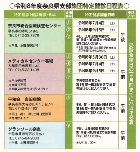 建連国保・奈良県支部 令和8年度特定健診のお知らせ